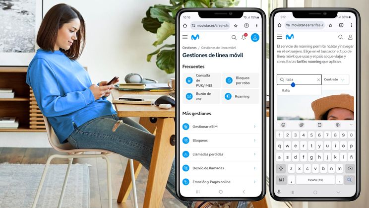 Para acceder al servicio de datos en Roaming en estos destinos, puedes solicitarlo de forma gratuita llamando al +34 696 223 570 desde cualquier país, accediendo a tu Área Privada en movistar.es, o a través de la app Mi Movistar (requiere conexión a Internet, por lo que si estás en el país visitado necesitarás conectarte a una red Wi-Fi).